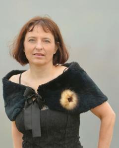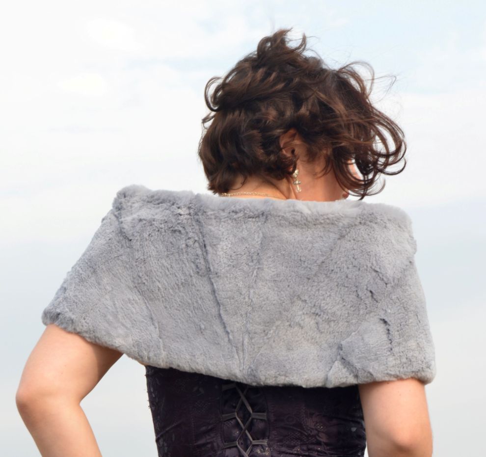 Kožešinová štola je vhodným doplňkem dámských společenských šatů. Je vyrobena ze stříhané králičiny, čímž je odstraněno línání kožešiny. Vyrábíme ji v barvě šedé a tmavě fialové. Velikost sedí na obvod ramen 95cm až 105cm. Po dohodě je možné vyrobit i jiných barvách a velikostech.