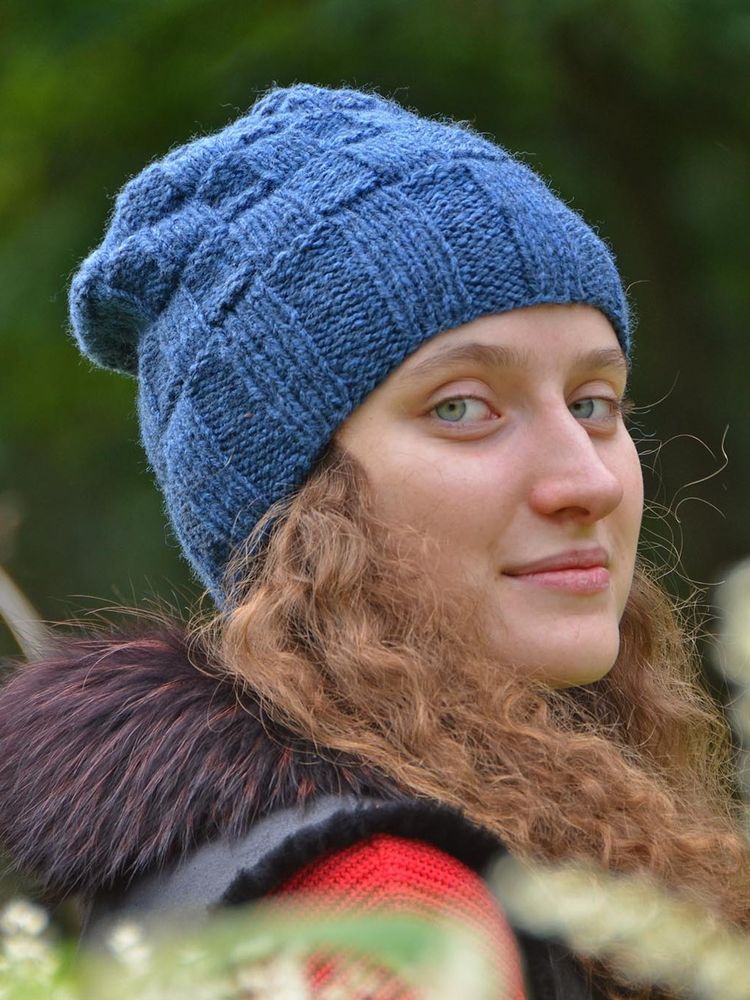 Klobouky, pletené čepice a čelenky: cepice-kostka-modra.jpg